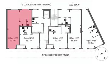 919043. Предлагаем помещение свободного назначения в ЖК "Лучи", корпус 15, площадью 70.7 кв. м, расположенное на первом этаже 24-этажного жилого дома. Без комиссии для покупателя.