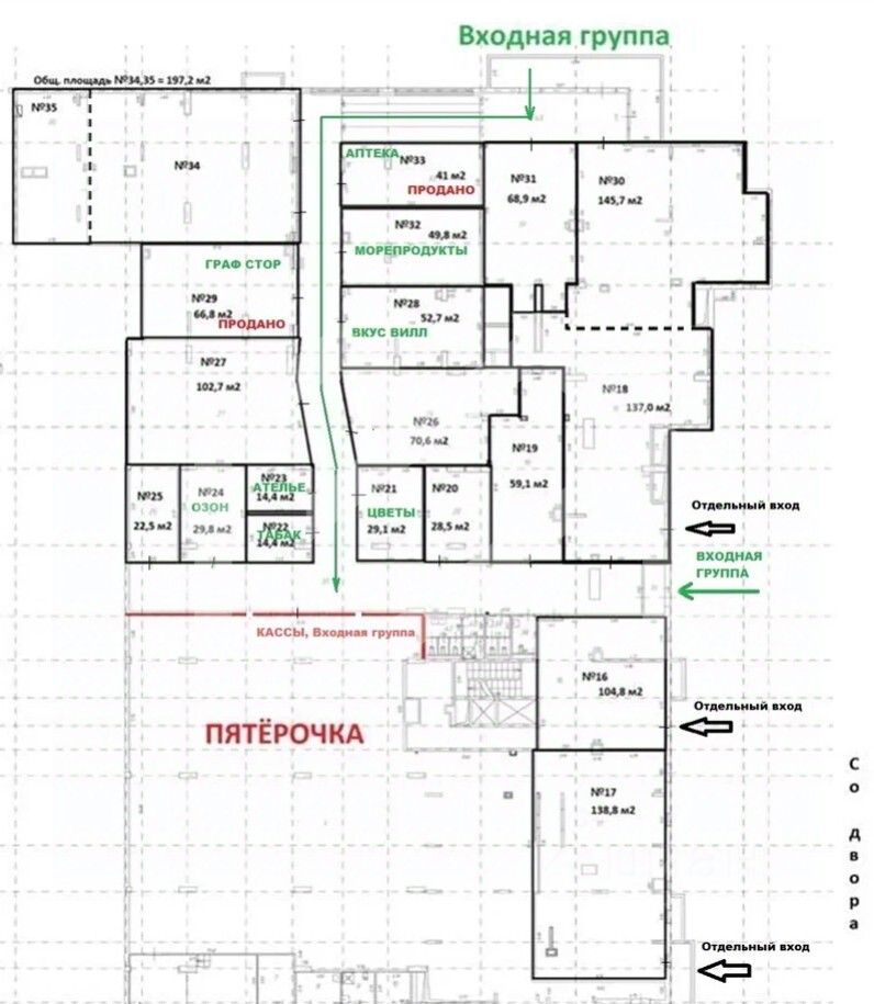 -отдельный вход со двора и торговой галереи.
