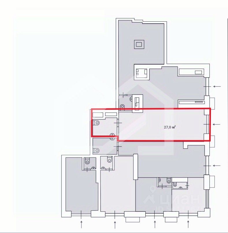 1009421. Предлагаем к приобретению помещение свободного назначения, площадью 27 кв. м., расположенное на первом этаже 45-этажного жилого дома. Без комиссии для покупателя.