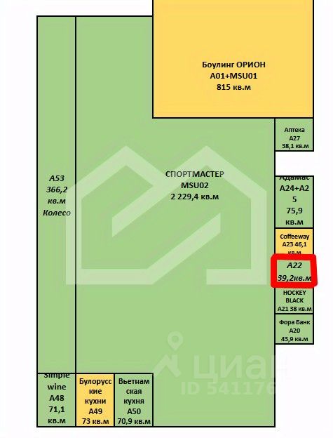1119928. Предлагаем помещение свободного назначения в МФК "Митино Парк", площадью 39.2 кв. м, расположенное на первом этаже 3-этажного здания. Без комиссии для покупателя.