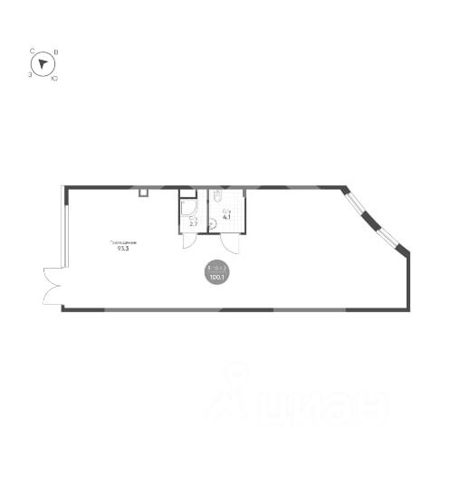 1064603. Предлагаем помещение свободного назначения в ЖК "Shagal", площадью 100.1 кв. м, расположенное на первом этаже 16-этажного жилого дома. Без комиссии для покупателя.