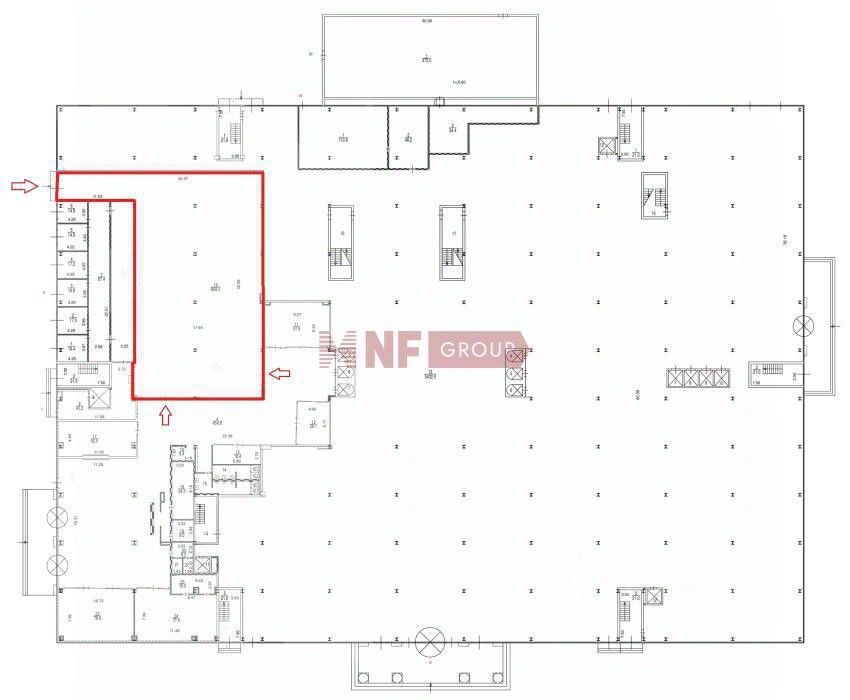 Помещение под отделку, шаг колонн 66 м и 69 м.