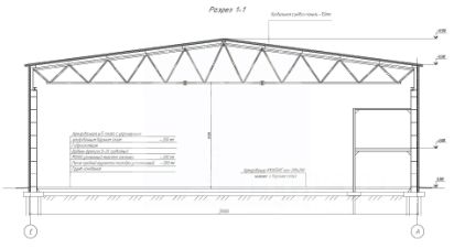 Высота потолка - 8 метров до ферм, 10 в коньке.