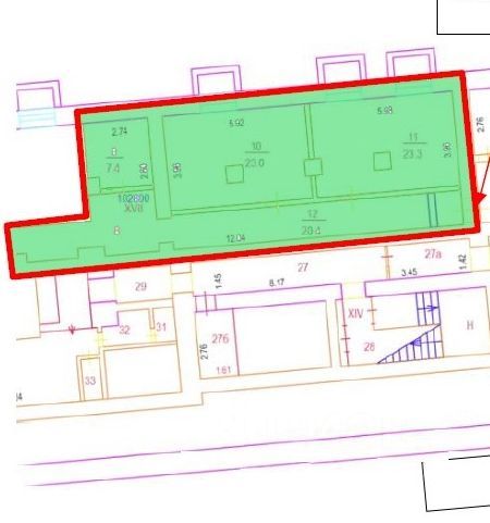 Возможна продажа части помещения по границам "комнат" от 7,4 до 46,3 кв. м.