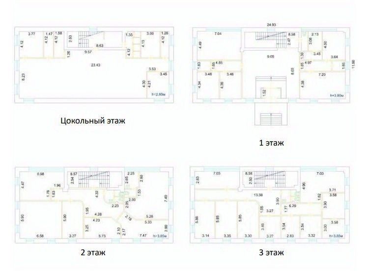 • здание состоит из 3х наземных и цокольного этажей