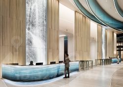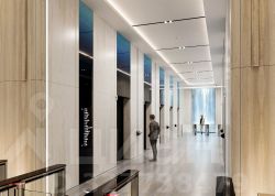 Пространства лобби обладают двусветной структурой, площадью до 500 кв. м, высотой потолков 8 м и витражным остеклением, что обеспечивает высокую степень естественного освещения.