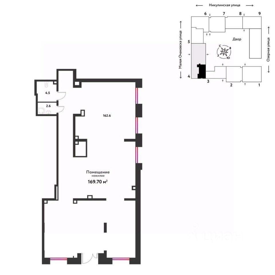 Продается помещение площадью 169.7 м2 в 7 мин. пешком от м. Озёрная. Помещение располагается в 30-этажном здании, находится на 1 этаже здания.