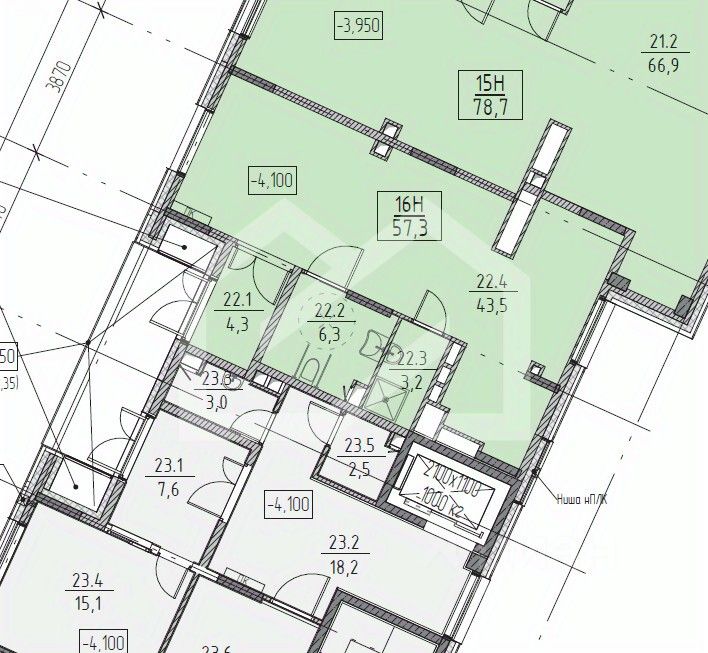 1141076. Предлагаем помещение свободного назначения в ЖК "Parkside", площадью 57.5 кв. м, расположенное на первом этаже 23-этажного жилого дома. Без комиссии для покупателя.