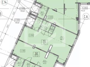 1141075. Предлагаем помещение свободного назначения в ЖК "Parkside", площадью 79 кв. м, расположенное на первом этаже 23-этажного жилого дома. Без комиссии для покупателя.