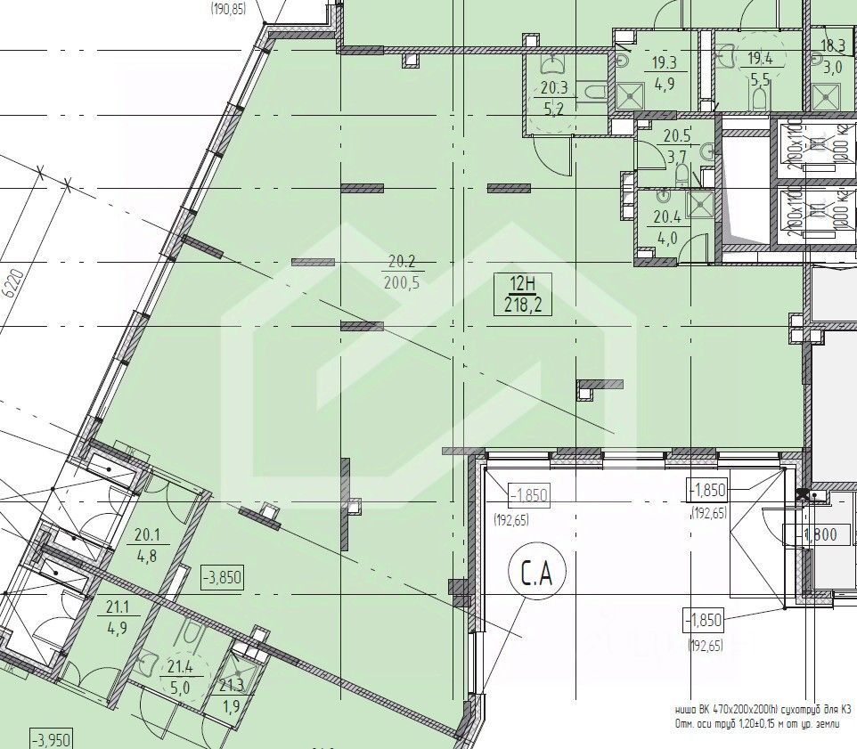 1141074. Предлагаем помещение свободного назначения в ЖК "Parkside", площадью 218.5 кв. м, расположенное на первом этаже 23-этажного жилого дома. Без комиссии для покупателя.