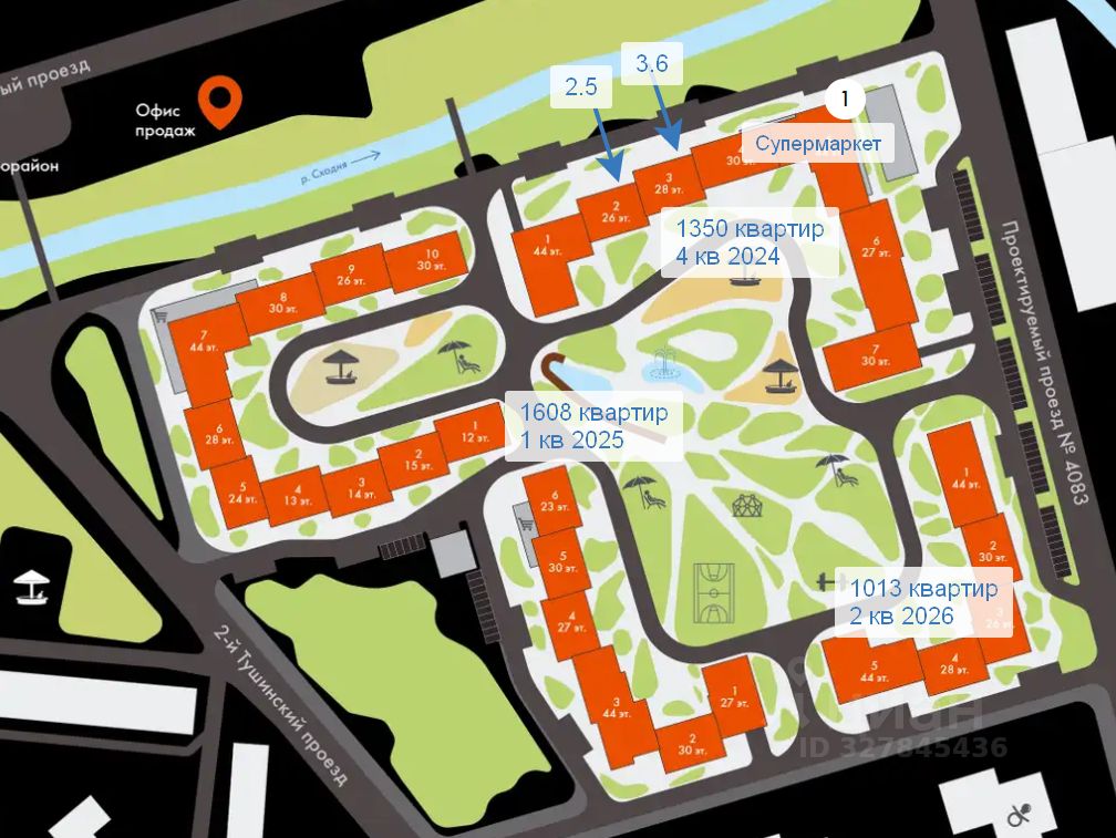 Высотная застройка (25-45 этажей). Мало коммерческих помещений. Перрвая очередь построена. Первая линия пешеходного бульвара. На пешеходном маршруте к остановкам транспорта и к супермаркету. Открытый план. Входы в помещение с первой линии и из закрытого двора. Витрины. Потолок 4,5 м. Электричество 20 квт.