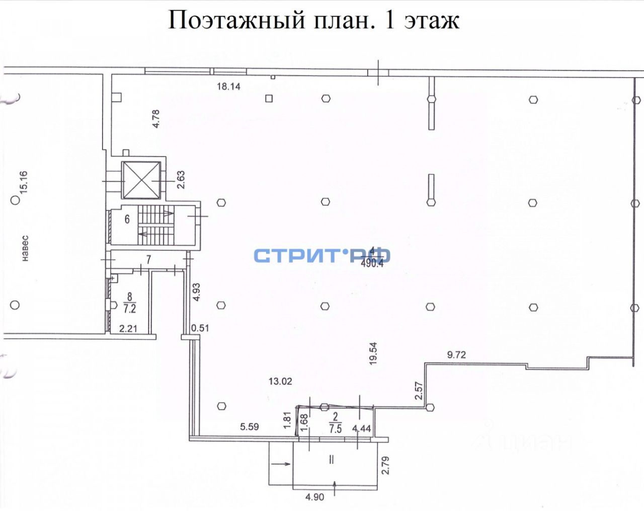 помещение на 1м этaже - 521,6м2, подвал 193,8м2
