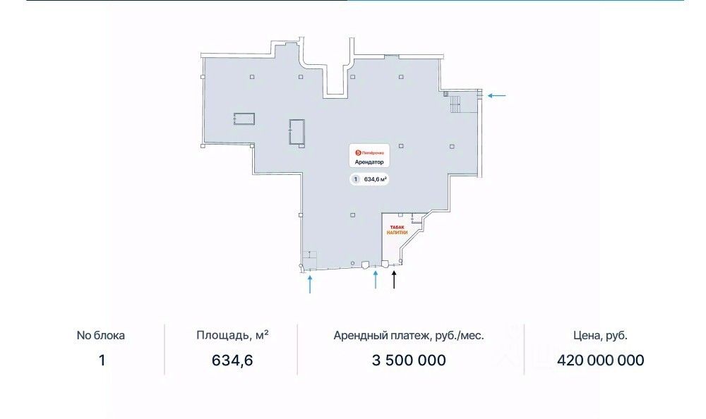 Состояние: внутренняя отделка выполнена арендаторами — вложения не требуются