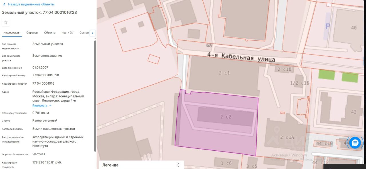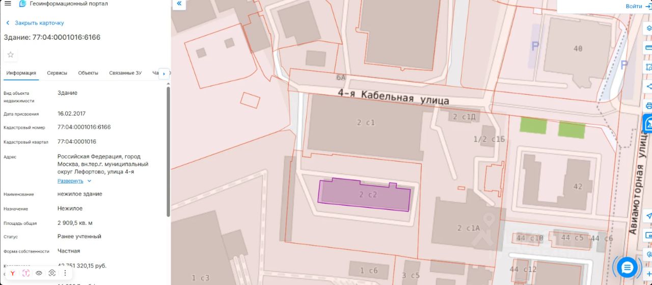 Земельный участок с кадастровым номером 77:04:0001016:28, расположенный по адресу: г. Москва, вн.тер.г. муниципальный округ Лефортово, ул. 4-я Кабельная, д. 2 стр. 2.