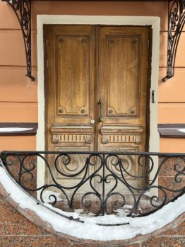 Второй подъезд с переулка с массивной дубовой дверью-это отдельный вход в наше помещение, которое расположено на 1 этаже. Вход, как положено, оборудован тамбуром и второй внутренней такой же дубовой дверью.