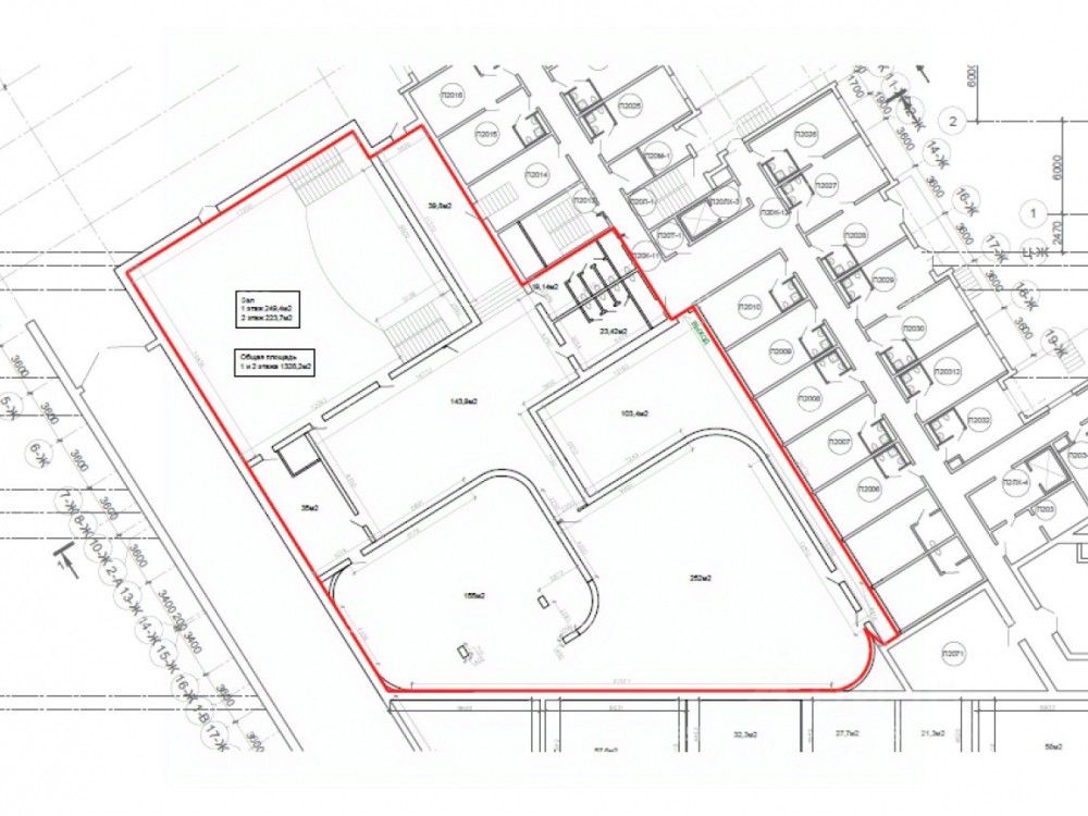 Площадь - 1240 кв.м., этаж - цоколь по документам, но по факту на уровне 1 этажа с окнами.
