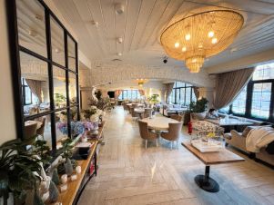 1 этаж - зал на несколько столов, ресепшн, оборудованная летняя терраса, подсобные помещения.