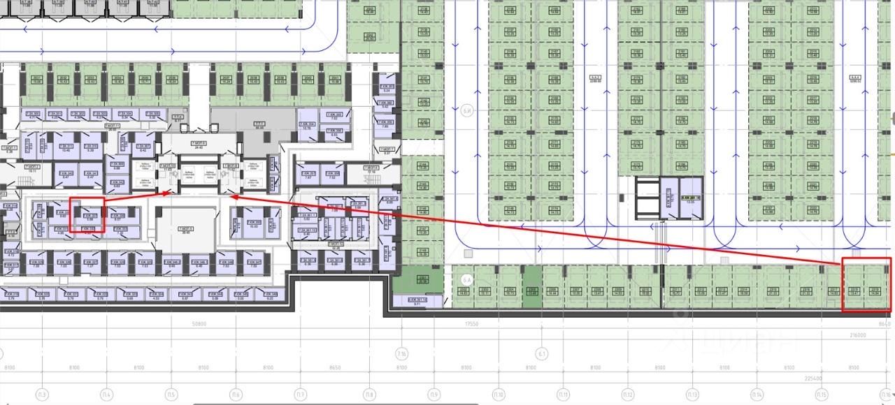 Так же продаем кладовое помещение под корпусом Д. На схеме видно расположение и кладовой и машиноместа.