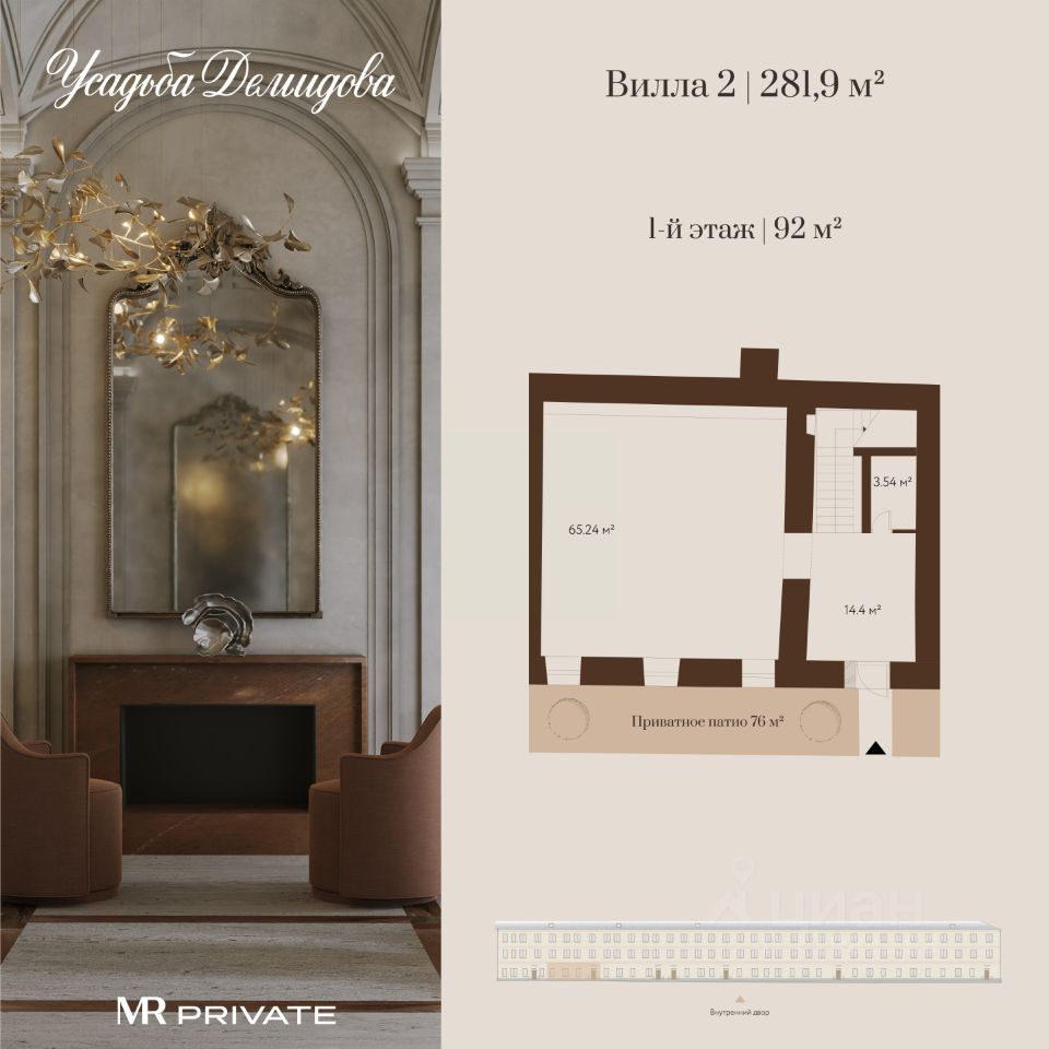 Усадьба Демидова — это уникальный формат загородной жизни на территории усадебного комплекса в исторической части Москвы. В корпусе 5 разместятся шесть вилл с приватной входной группой и собственным патио, а также три просторные резиденции с видами на парк.