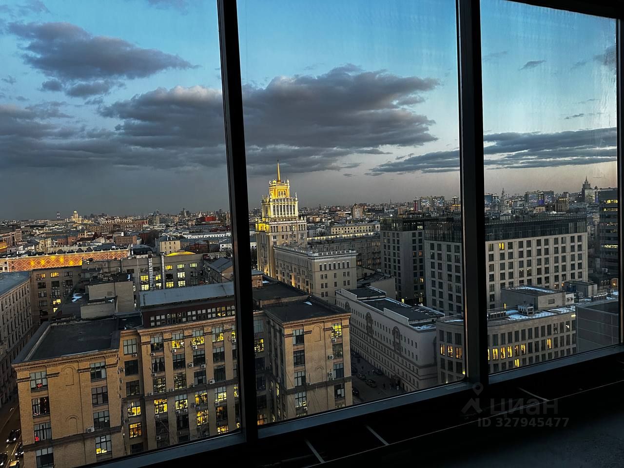 Из окон открываются панорамные виды на Москву: Москва-Сити, Кремль, Белый дом, гостиница Украина, Останкинская телебашня.