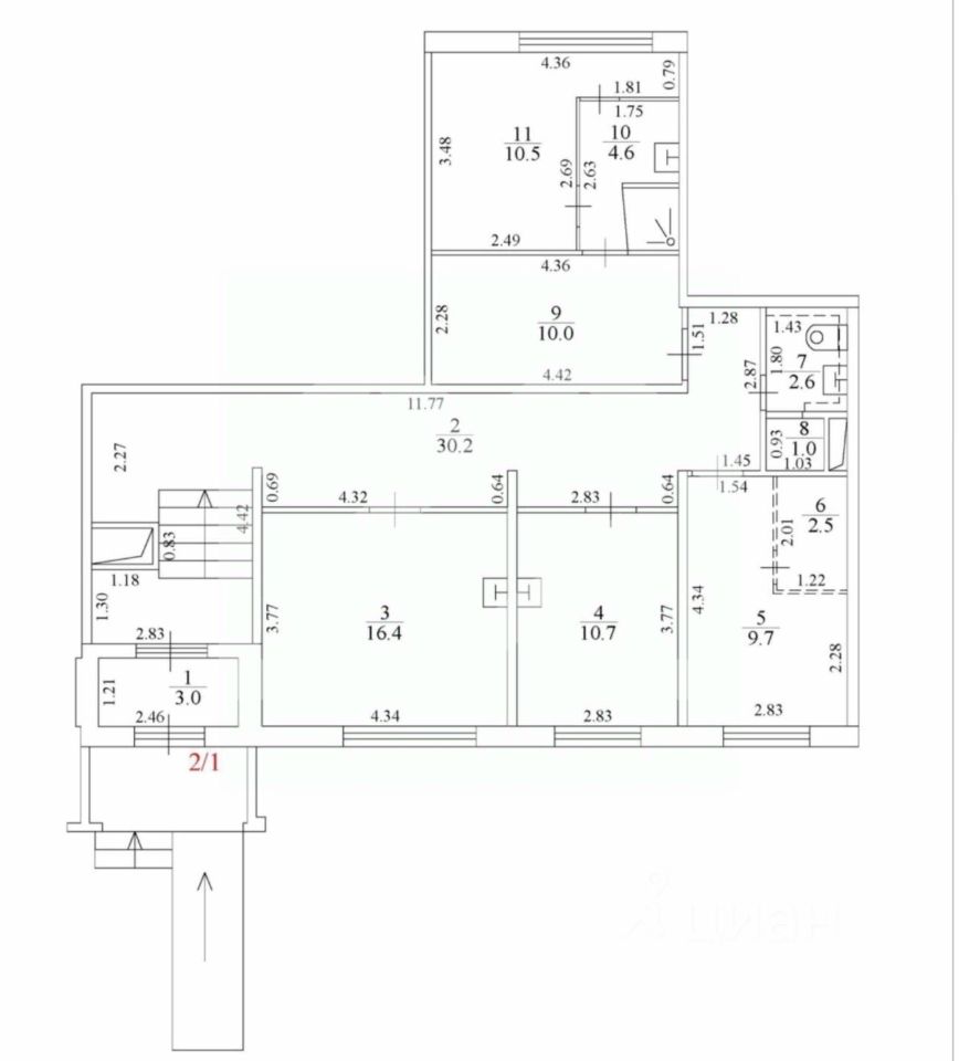 -высота потолков: 2.7 м.