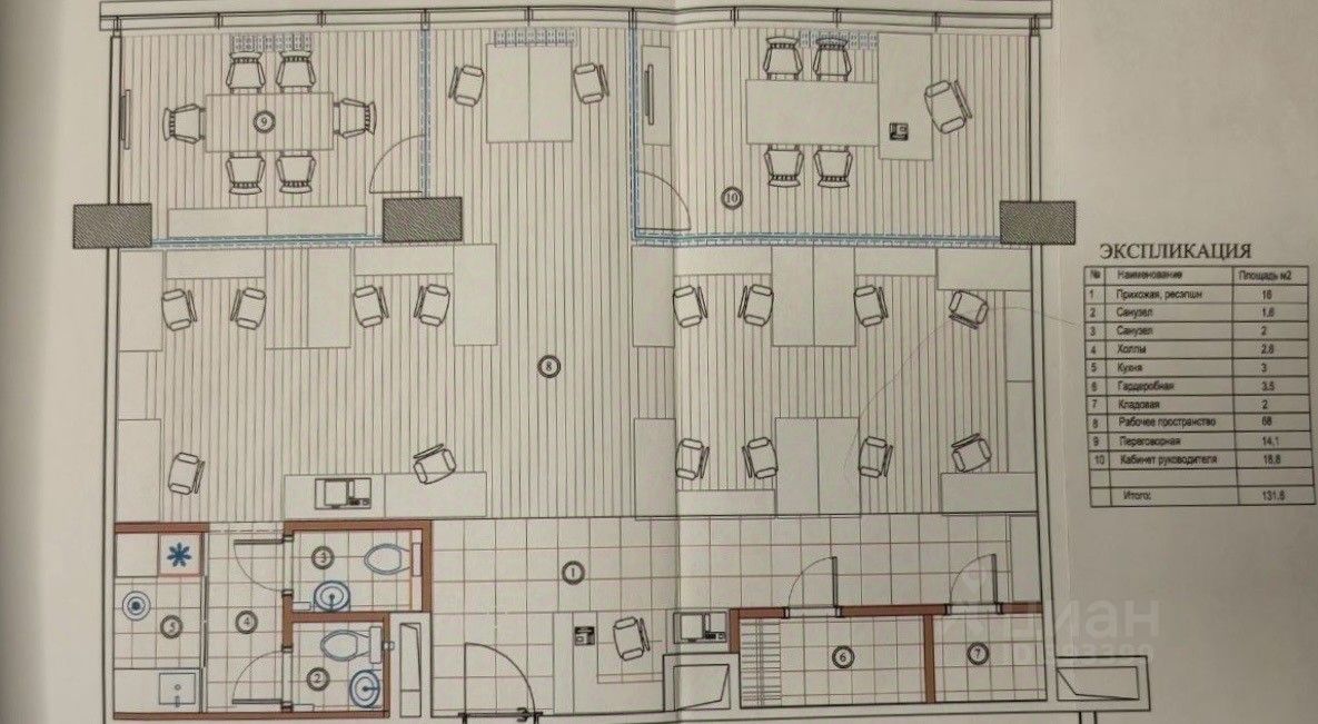 Площадь офиса составляет 131,6 кв.м.