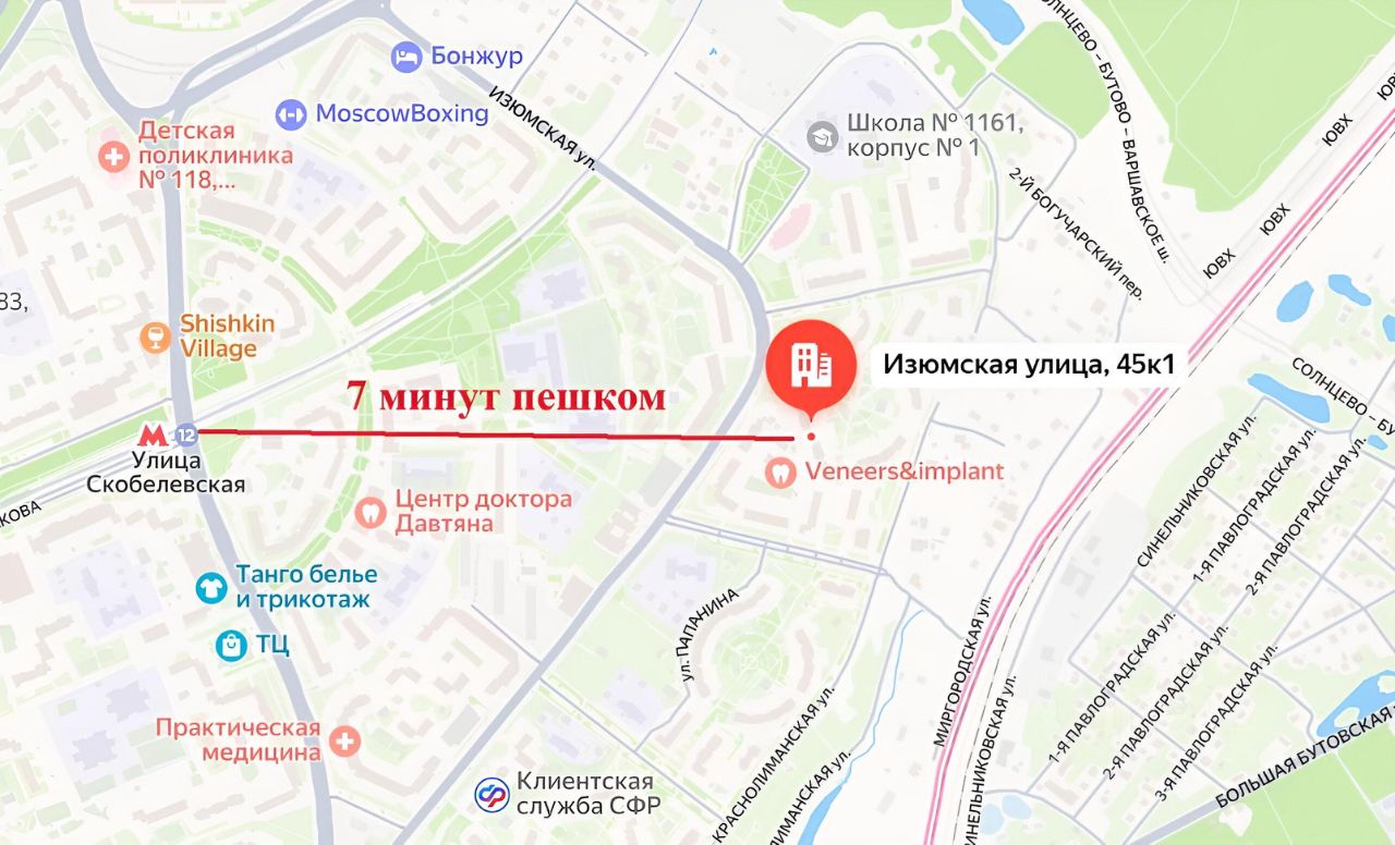 Нежилое помещение, 175 м², 1 этаж. Пешая доступность от метро — 6 мин. от м. Скобелевская. Отличная видимость со стороны главной дороги. Первая линия домов, высокая проходимость и видимость. ДВА отдельных входа, позволяющие организовать раздельные потоки клиентов. Коммуникации: 4 санузла с водой (мокрые точки), электрическая мощность 30 кВт с возможностью увеличения. Парковка свободная для клиентов и персонала. Внутренние стены не капитальные, что позволяет перепланировку без согласований. Фасад может использоваться как рекламная площадка. Помещение сдано в краткосрочную аренду. Арендная плата 245 000 руб. в месяц + коммунальные платежи. В случае пролонгации договора, предусмотрена индексация от 5%. Окупаемость при текущей арендной ставке (без учета индексации) составляет примерно 10 лет. Окупаемость с учетом ежегодной индексации арендной ставки на 5% - 7 лет. Собственник (физическое лицо). Все правоустанавливающие документы. Заключены прямые договоры на ресурсы. Полная стоимость, без скрытых комиссий. Продажа с действующим арендатором (медицина). Густонаселенный развивающийся район ЮЗАО. Дополнительная информация, осмотр объекта, ознакомление с документацией по запросу.