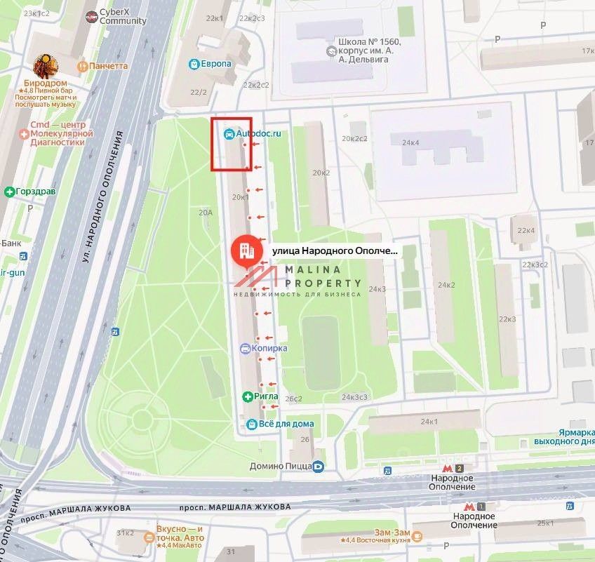 Продажа торгового помещения 324 м2 на ул. Народного Ополчения, д. 20 корпус 1 (5 минут на транспорте от метро Октябрьское поле). 1 линия домов.