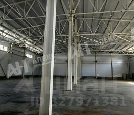 Склад имеет открытую планировку и оборудован двумя большими современными воротами. Электрическая мощность объекта — 600 кВт. Водоснабжение обеспечивает расход до 5 м в сутки. Полы выполнены из бетона с антипылевым покрытием, что способствует поддержанию чистоты.