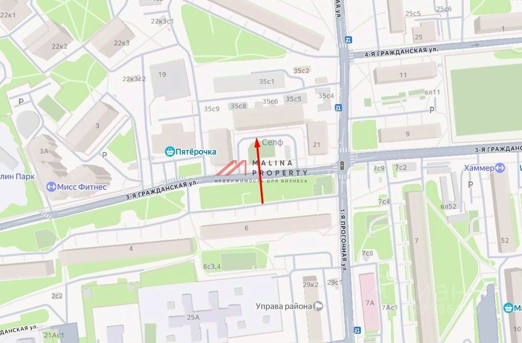 Продажа торгового помещения 137 м2 на ул. 3-я Гражданская, д. 21 (15 минут пешком от метро Бульвар Рокоссовского). 1 линия домов.