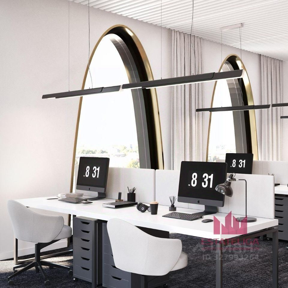 Можно разделить на 2 кабинета или оставить пространство открытым.