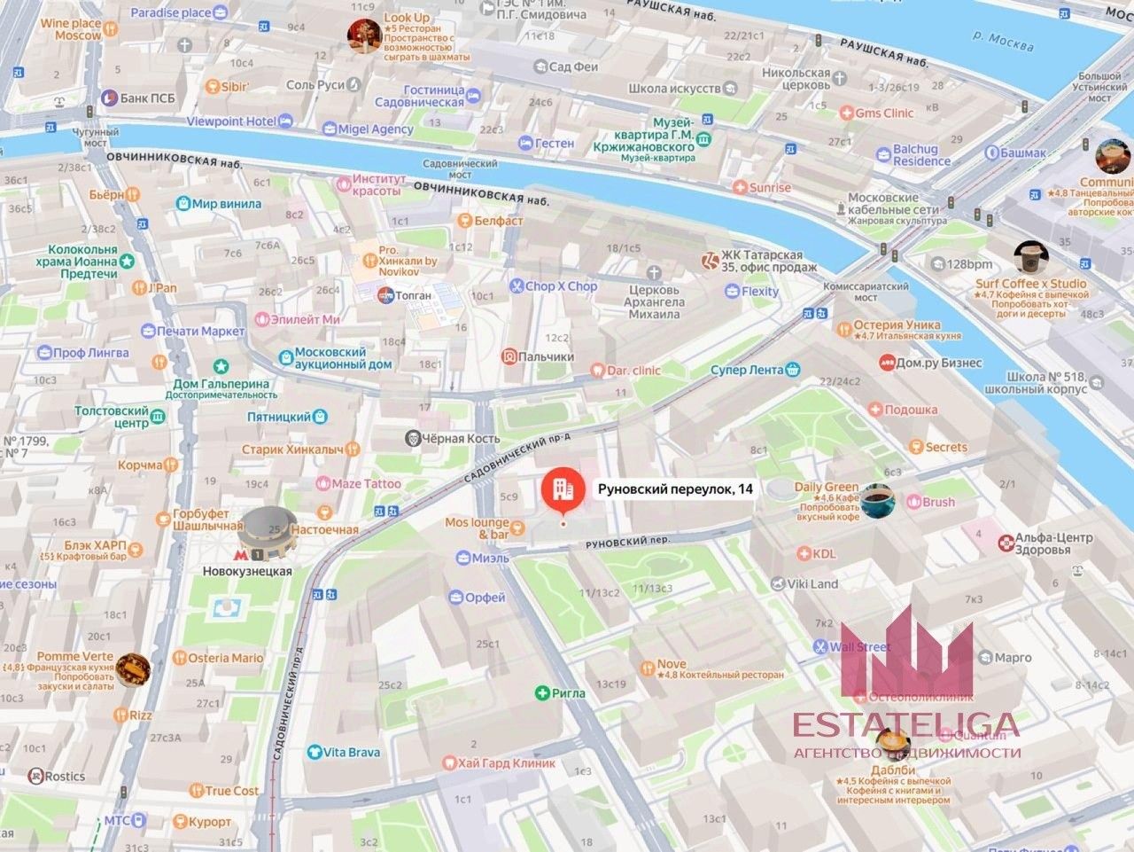 Он находится в 2 минутах ходьбы от метро "Новокузнецкая", через которую проходят основные пешие маршруты до Третьяковской галереи, нового выставочного пространства "ГЭС-2", парка Зарядья и Московского Кремля.