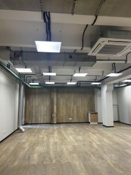122,8 кВ.м . с офисной отделкой. Высокие потолки, хороший объем . Открытая планировка, можно расставить мебель и начать работать.