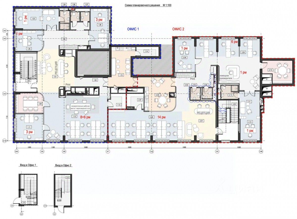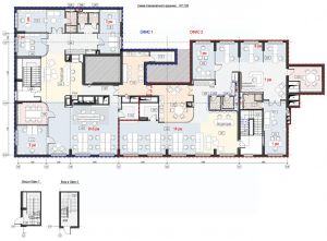 По плану обустроены: рабочие залы, кабинеты руководителей, бухгалтеров, ПТО, переговорные, санузлы, гардеробы, архивы, серверные.