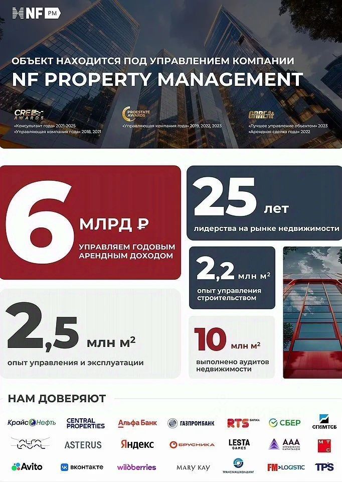 Для управления объектом привлечена профессиональная Управляющая компания NF Рrореrty Маnаgеmеnt