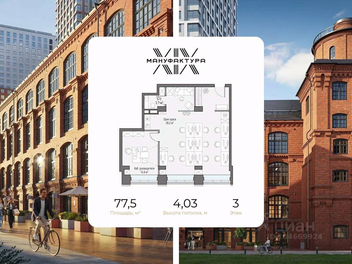 Креативный деловой центр "Мануфактура XIX" - это современные офисы и ретейл в камерном историческом здании на Кутузовском. Расположен в главном корпусе Московской шерстоткацкой мануфактуры 1900 года: сейчас это объект культурного наследия с самобытной архитектурой в сложившемся деловом районе. Широкий выбор офисов площадью от 29,1 до 246 кв. м со свободными планировками и потолками высотой от 4 м. Современный ретейл площадью от 24 кв. м со свободными планировками и потолками высотой от 3,2 до 4 м. У пространств на первом этаже отдельный вход с улицы и места для вывесок на фасаде. Девелопер проекта - Sminex, перфекционисты Fine Development. Компания создаёт совершенные дома: восхищающие, удобные, красивые, с наилучшим сервисом.