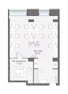 Офис 68,3 кв.м. в камерном историческом здании из красного кирпича - здании Московской шерстоткацкой мануфактуры. Ориентирован на Северо-восток. Большие арочные окна, стены из оригинального красного кирпича, потолки высотой 4,03 м. Офис оснащен современными системами комфорта - центральное кондиционирование, мощная приточно-вытяжная вентиляция.