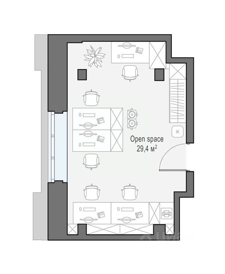 Офис 29,4 кв.м. в камерном историческом здании из красного кирпича - здании Московской шерстоткацкой мануфактуры. Ориентирован на Северо-запад. Большие арочные окна, стены из оригинального красного кирпича, потолки высотой 6,41 м. Офис оснащен современными системами комфорта - центральное кондиционирование, мощная приточно-вытяжная вентиляция.