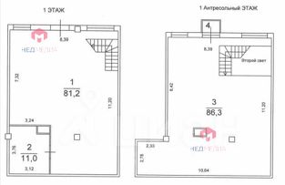 1 этаж 92,2 кв.м. (h=3.5м.), антресоль 86,3 кв.м. (h=3.2м). Эл. мощность 18 кВт. Есть небольшой балкон. В помещении выполнена стяжка.