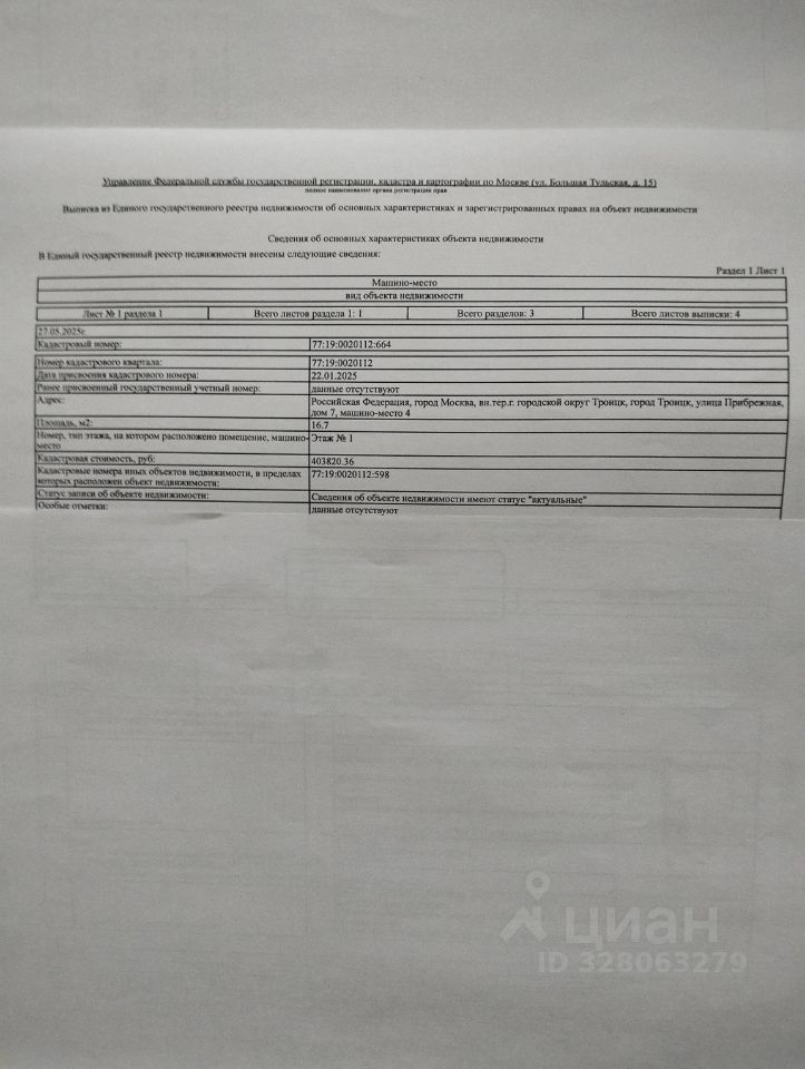 Риэлторов просьба не беспокоить. Продаю машиноместо в многоуровневом паркинге, ЖК Троицкая Ривьера. 1 этаж, площадь 16.7 кв. м.