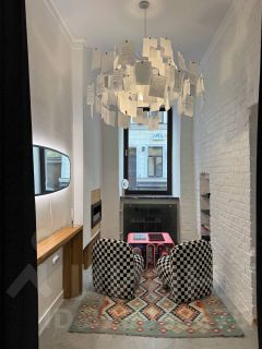 Планировка удобно делит помещение на две части: хозяйственную и парадную. Выполнен дизайнерский ремонт с использованием дорогих материалов - мрамор, массив дуба, оригинальная мебель Boucle, культовая люстра Ingo Mauer. Есть биокамин в авторских изразцах в виде печенья "Юбилейное".