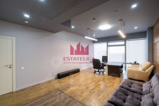 Функциональная планировка включает в себя: просторную входную зону с диванами, кабинет руководителя с отдельным санузлом и душевой, большую переговорную, 2 малых переговорных, кухню, гостевой санузел.