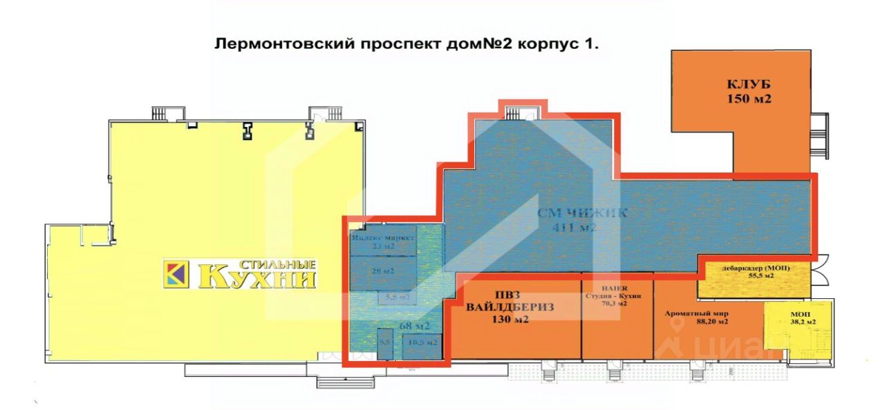 637122. Предлагаем торговое помещение с сетевым и надежным арендатором - магазином "Чижик", площадью 411 кв. м., расположенное на первом этаже жилого дома. Без комиссии для покупателя.