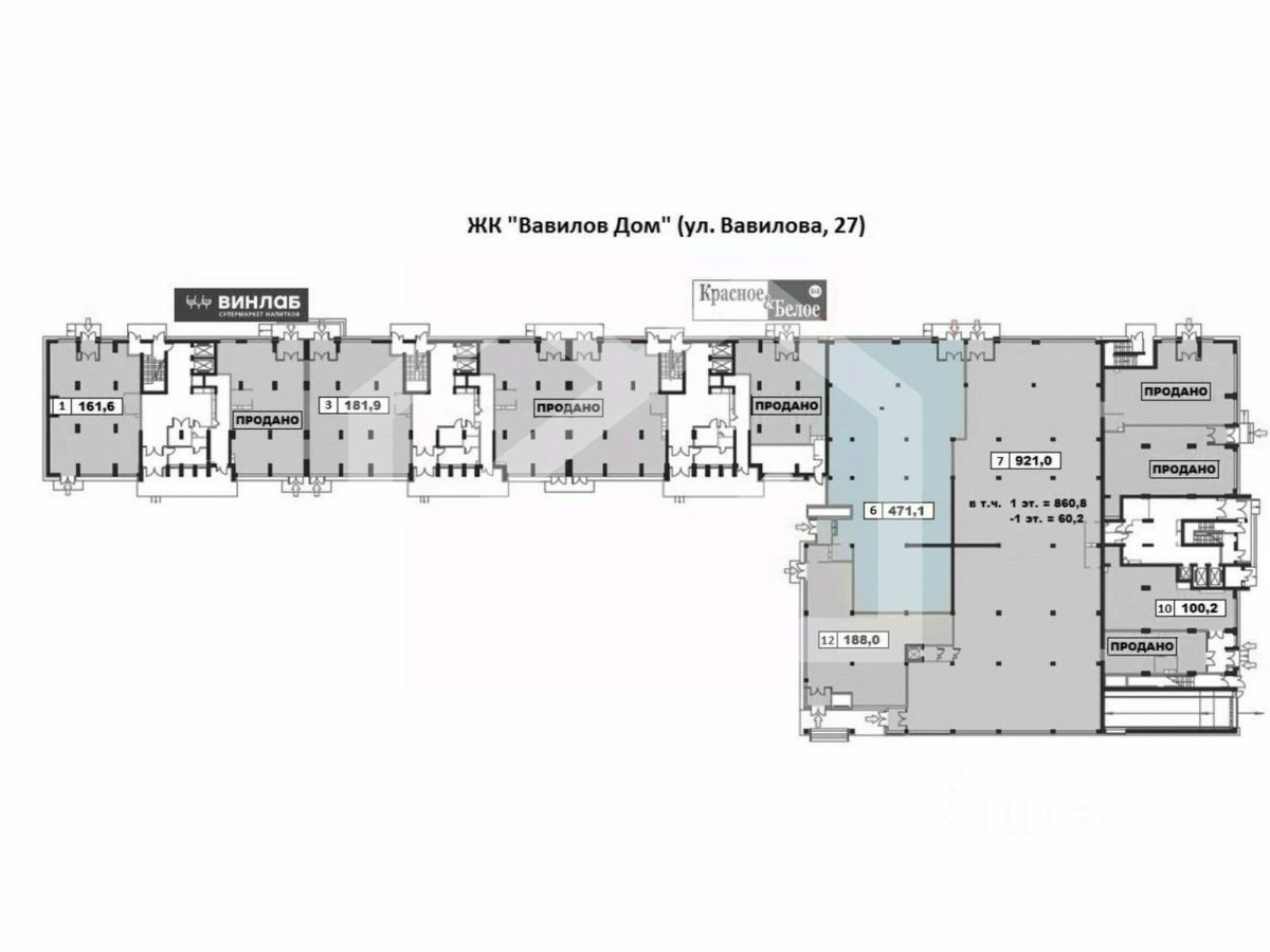 657573. Предлагаем к приобретению помещение свободного назначения с арендатором "Магнит", площадью 471.1 кв. м., расположенное на первом этаже 19-этажного жилого дома в ЖК "Вавилов Дом". Без комиссии для покупателя.
