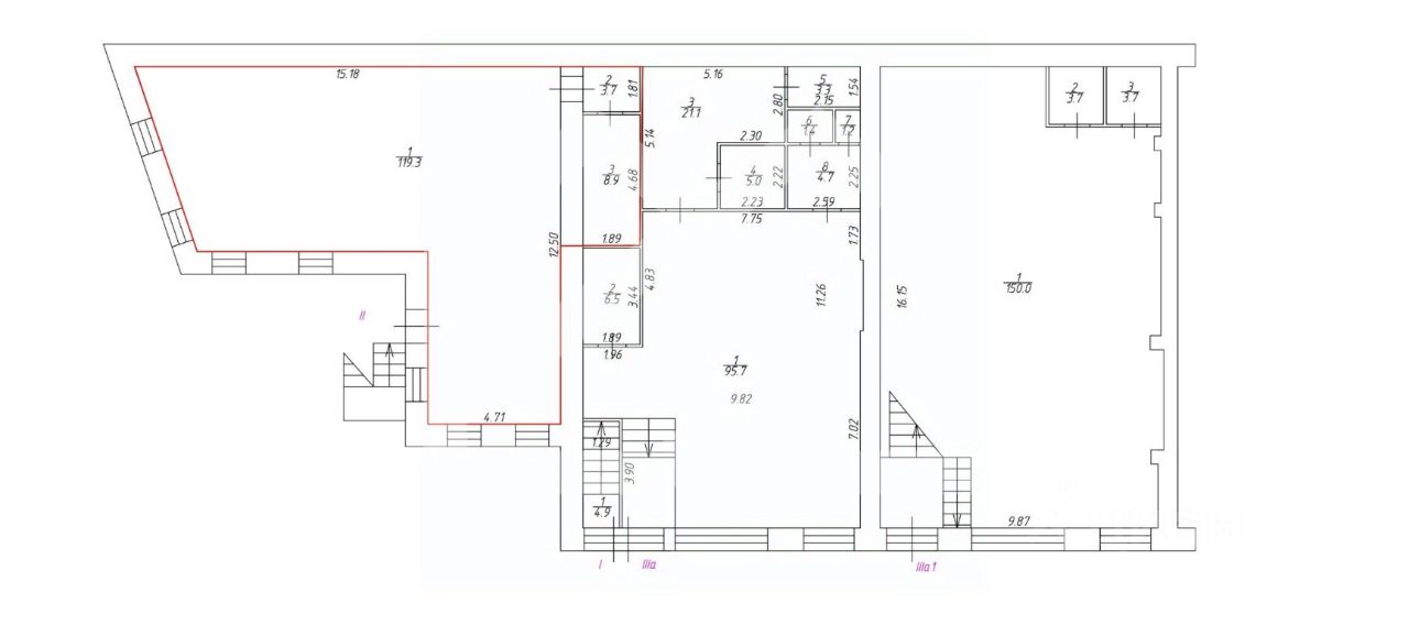 -высота потолков: от 3 м до 8 м.