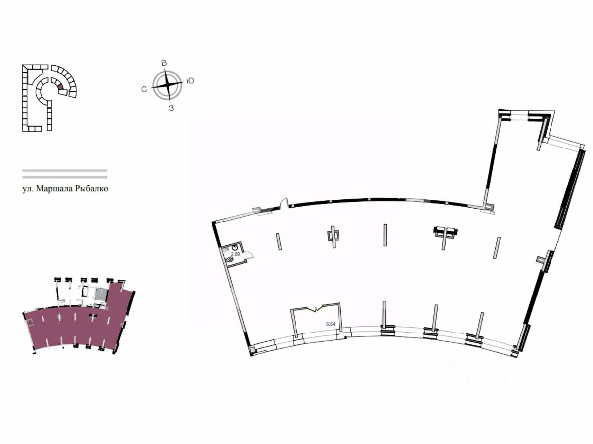664183. Предлагаем помещение свободного назначения с арендатором "Клиника профессора Трубилина", площадью 268,9 кв. м., расположенное на первом этаже жилого дома в ЖК "Маршал". Корпус 6. Без комиссии для покупателя.