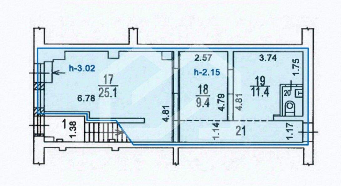 -высота потолков: от 2.15 до 3 м.