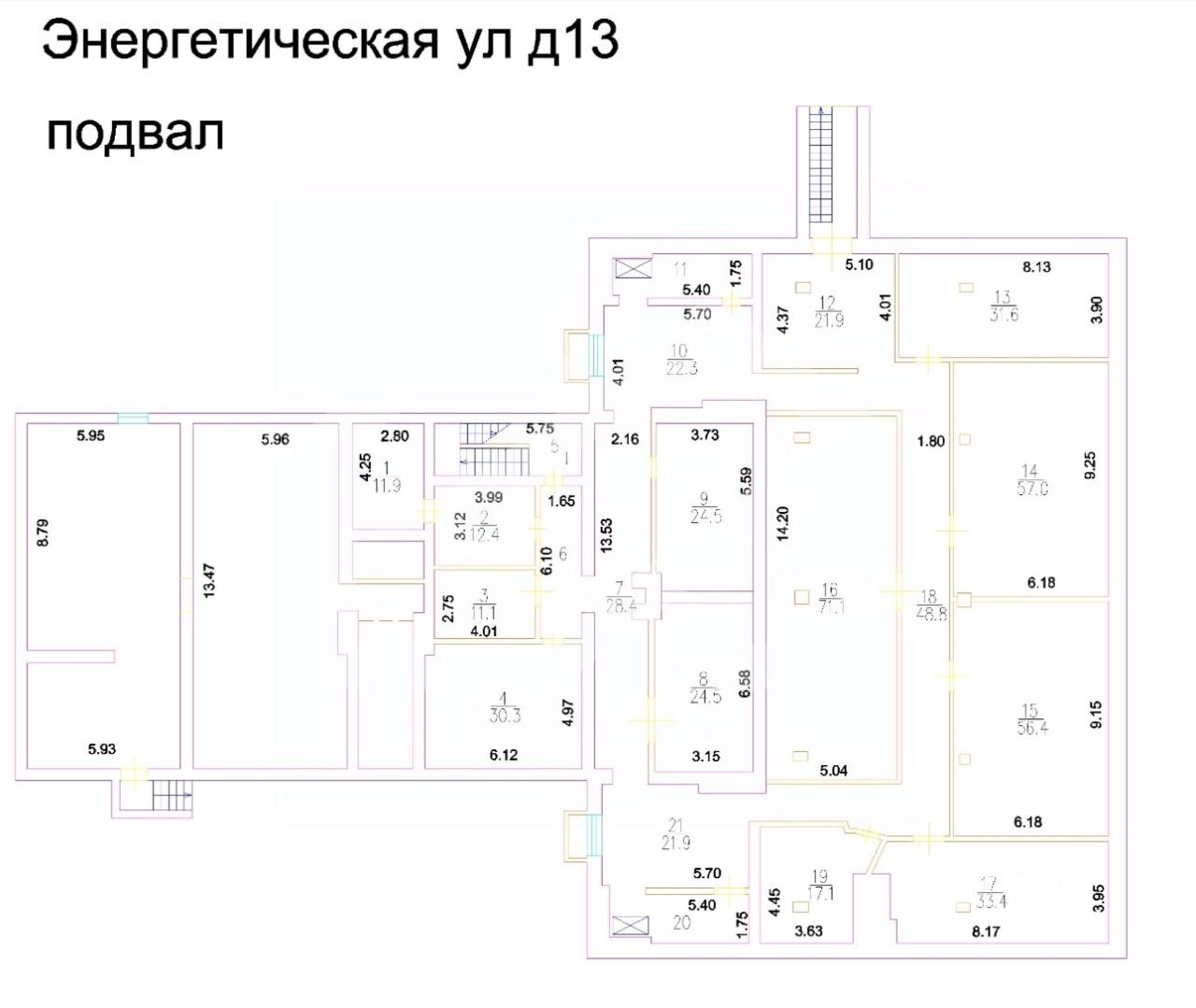 1073721. Предлагаем помещение свободного назначения во встроенно-пристроенной части с арендатором "Яндекс Лавка", площадью 573.5 кв. м, расположенное в подвале 12-этажного жилого дома. Без комиссии для покупателя.