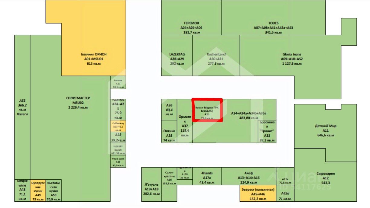 1119643. Предлагаем помещение свободного назначения с арендатором Кухни Мария (ФК Мебель) в МФК "Митино Парк", площадью 79.6 кв. м, расположенное на первом этаже 3-этажного здания. Без комиссии для покупателя.