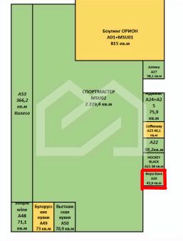 1119706. Предлагаем помещение свободного назначения с арендатором в МФК "Митино Парк", площадью 43.9 кв. м, расположенное на первом этаже 3-этажного здания. Без комиссии для покупателя.